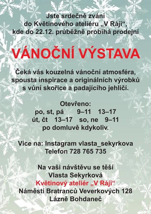 VÁNOČNÍ VÝSTAVA - Květinový ateliér "V Ráji"