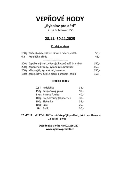V areálu "Rybolov pro děti" pořádáme Domácí vepřové hody.