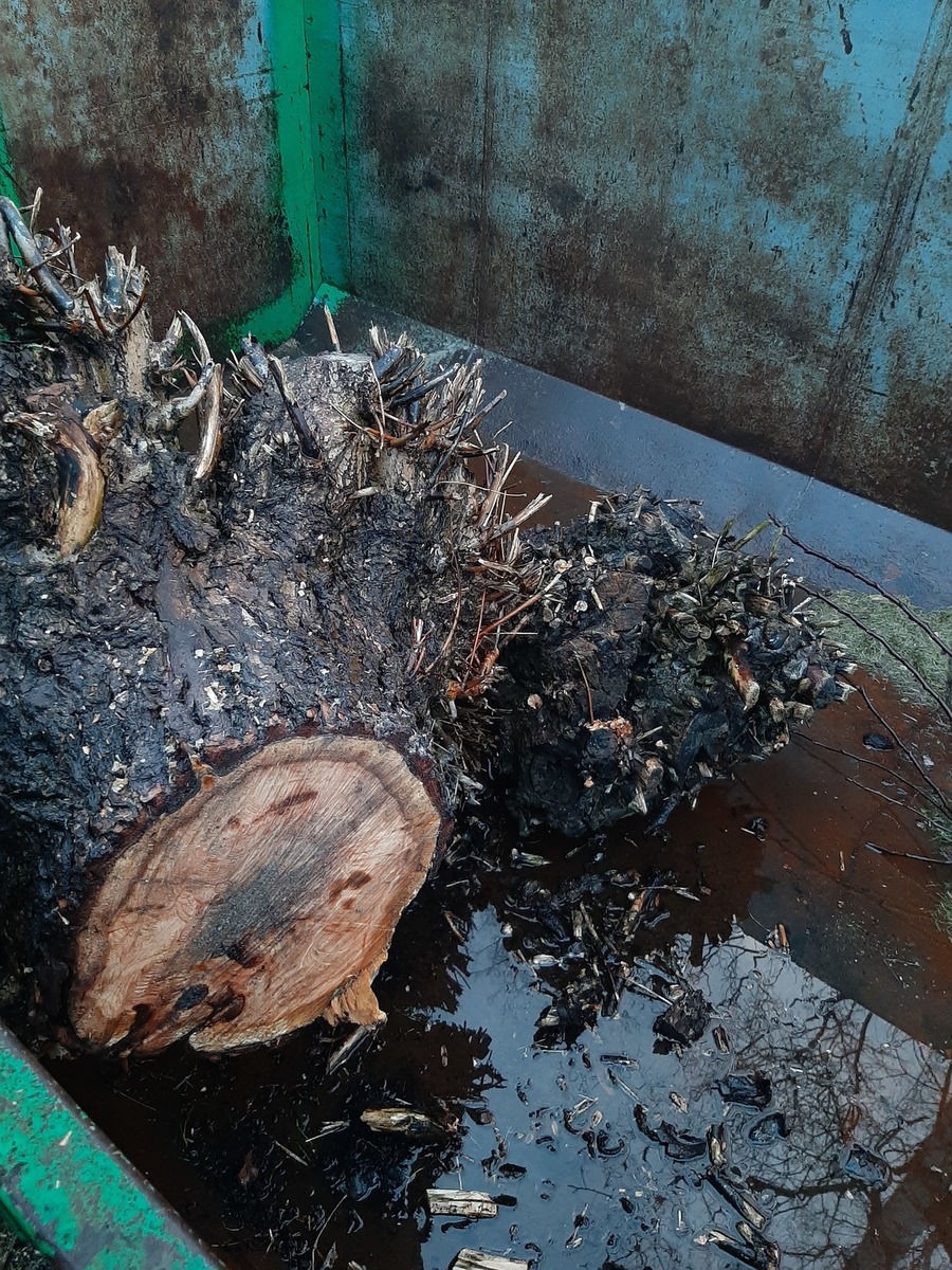 Na fotografiích včerejší přírůstek do bio kontejneru. Kontejner slouží pro biologicky rozložitelný odpad, který je odvážen na kompostárnu. Větve, jak bylo již několikrát zmíněno, by měly dosahovat max. průměru 5 cm. Pokud kontejner obsahuje to, co nemá, stojí likvidace další finanční prostředky. Budeme rádi, když se nám původce těchto pařezů ozve, rádi poradíme s jejich likvidací.