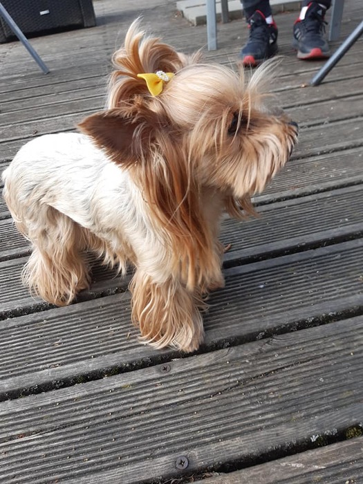 Jedná se o plemeno: Jorkširský teriér, barva modrá tříslová, pohlaví fena, jméno Adélka. Na hlavě měla culíček a růžovou mašličku. Je očipovaná a přihlášená do registru: národní registr Help4pet a v registru mikročipů. Číslo čipu 900085001078187.