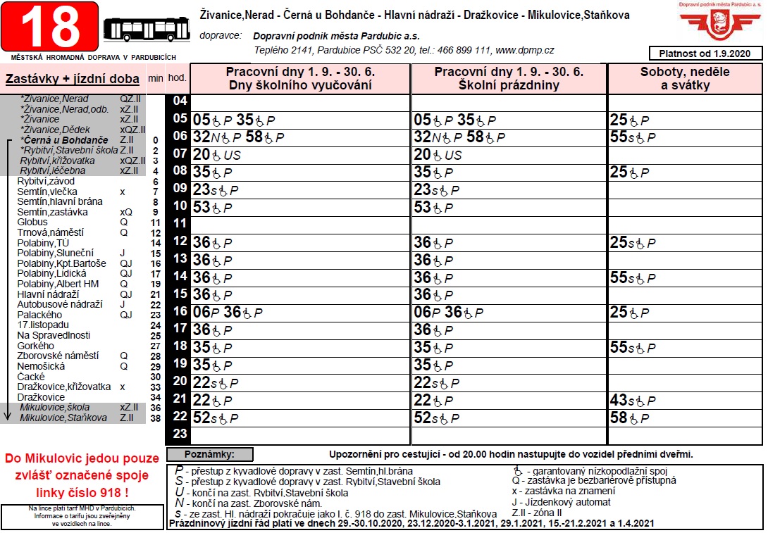 Odkaz na kompletní jízdní řád linky č. 18 a informace o výluce